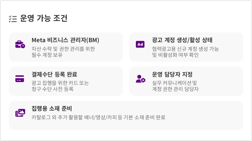 Meta 비즈니스 관리자 (BM) / 자산 수락 및 권한 관리를 위한 필수 계정 보유